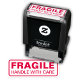 Bräcklig, hantera med vård, röd självfärgande stämpel
