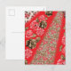 Bräckt rödtyg med svår blommigt och helg vykort