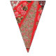 Bräckt rödtyg med svår blommigt och vimplar