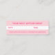 Ett mini-avtalat kort för professionell för ett företag som bedriver braiding. Med ord "braider" i en groovisk reflektor stil. På kortets framsida finns ditt namn och din kontaktinformation. På baksidan av kortet finns det utrymme för dig att skriva ett datum och en tidpunkt för en kunds nästa möte, tillsammans med en påminnelse om din annulleringsprincip. Textmallarna kan vara enkla att personlig.
