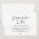 Bläddra före mig, ett modernt, minimalistiskt designtema, bröllop-inbjudan till middagsinbjudan (i svart typsnitt och du kan enkelt ändra typsnittet färg). Planerar du en bröllopsdagtid med den blivande Briden och Groom, före deras högtid? Bjud in gästerna med det perfekta bröllopsbesökskortet. Lägg till information om repetitionsmiddagen i matchande teckensnitt/bokstäver.