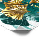 Branch with jewelry, gold and green leaves of Ginko biloba on light, painted green background. Ginko biloba