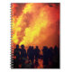 Den här bärbara datorn har en enorm brand och brandmän som har bildats på den.