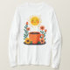 Bränd av kaffe och Positivitet: Ett fint kaffe kopp med sol och blommor runt omkring, med en positiv, ljusstark vibe.
