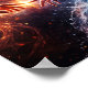Två motsatta krafter sträcker sig mot varandra - den ena bildad av eld, den andra av strömmande vatten - och möts i en strålande ljusexplosion vid kontaktpunkten. Ögonblicket fångar både spänning och harmoni, där kontrast blir till kontakt.