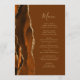 Den moderna menyn bröllop på den lämnat kant i eleganten har en vattenfärgsagat gräns i rost- och brinnande orangar, som trimmas med faux guld glitter. Anpassadet kombinerar handskriftsskript för guld-färgad och kopparplåt typsnitt på en muskelbrun bakgrund. Den omvända sidan har en matchande rost och guld agate-design.
