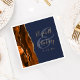 I den här eleganten har moderna bröllop-servetter en bränd vattenfärgsdesign i orange som har trimmats med faux guld glitter. Anpassa enkelt färgaden i guld på en mörk marin blå bakgrund, med namnen av bruden och brudgummen i handskriftsbilder över en stor, medelstor marin blå yta.