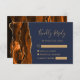 Det moderna djurutrymmeskortet i elegantens lämnat kant har en bränd orange vattenfärgad agate i gräns som trimmas med faux guld glitter. Rubriken "Kinly Reply" visas i handskriftsskript, med anpassade nedanför i guld färgad-typsnitt på en mörkens marinblå bakgrund. Den omvända sidan har en matchande bränd orange och guld agate-design.