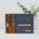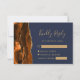 Det moderna djurutrymmeskortet i elegantens lämnat kant har en bränd orange vattenfärgad agate i gräns som trimmas med faux guld glitter. Rubriken "Kinly Reply" visas i handskriftsskript, med anpassade nedanför i guld färgad-typsnitt på en mörkens marinblå bakgrund. Den omvända sidan har en matchande bränd orange och guld agate-design.
