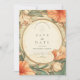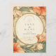 Den här romantiska designen har fet nedbränd orange och mjuka beige blommigtar som sveper runt en cirkulär kräm ram. Med rik, Art nouveau linjer och en aning vintage charm framkallar denna inbjudan värme, elegans och naturskönhet - perfekt för en höst- eller trädgårdskrävande bröllop.