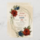 Unikt inbjudningskort för möhippan med romantisk bränd orange och blåa blommor och grönt löv i flottan på ett vackert geometriskt ram. OM DU VILL HA MER MATCHING PRODUCTS klickar du på samlingen ovan eller kontaktar mig.
