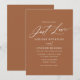 Vänner och familj från inbjudan till i bröllop glädje med denna moderna inbjudan, med ett elegant på en bränd orange.