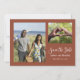 Den här minimala brända orangen sparar datumkortet med en QR-kod, vilket gör det enkelt för gästerna att få information om din speciella dag. Två av dina favoritfotografier kompletterar din personlig