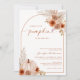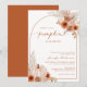 Elegant inbjudan till baby shower med bränd orange färg med vattenfärg höstblommor och krämfärgad pumpa design.