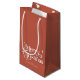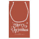 Julpresentväska med ett reflextypsnitt som säger "god jul" med stjärnor runt. Bakgrunden till färg är bränd orange.
