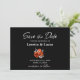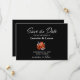 Informera dina vänner och dina nära vänner om ditt framtida bröllop med detta brända orange blommigt svart spara-till-datum-kort för att se till att de vid behov kan ordna ledigt för att se till att de kan närvara på din speciella dag.