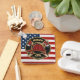 Brandmansbrandkår NAMN Fireman Department USA flagga design - Emblem with Red Helmet and Ax. Anpassa med ditt namn, Station/avståndsnummer och plats.