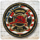 Brandmansbrandkår NAMN Fireman Department USA flagga design - Emblem with Red Helmet and Ax. Anpassa med ditt namn, Station/avståndsnummer och plats.