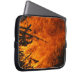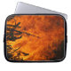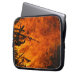En stapel med silhuetterade pinnar på bildens lämnat sida brinner upp kraftigt. Mesmeriserande orange av mörk och gult flammar till största delen fotonas ram. Vinden skjuter upp brandens torr så att den vinklar diagonalt upp till högerna. Digital, färg-fotografi. Copyright © 2010 Claire E. Skinner. Alla rättigheter förbehållna.