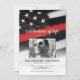 Fira det heroiska livet för en avliden brandman med denna meningsfulla inbjudan till brandmans minnesstund. Genomtänkt utformad för att hedra mod, uppoffring och patriotisk anda, har denna inbjudan den majestätiska amerikanska flaggan och den ikoniska tunna röda linjen, en symbol för brandmannayrket.