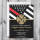Denna design har en brandmänsflagga med svarta och vita ränder, och även en tunn röd rand. En brandmans märke sitter ovanför all information om festen för den brandman som tagit examen. Denna design fungerar också bra för en pensionerad brandmans, löjtnants eller chefs pensionsfest.