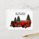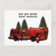 Julkort för brandmän med jultomten som delar ut presenter från en brandbil och rolig citat.