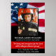Amerikansk flagg- och tunn röd linje-minnesmärke för brandman i modern amerikansk flaggdesign med tunn röd linje. Personliggör denna brandmans begravningsskylt med din brandmans foto, namn och datum. Citat: "Var stark och modig, för Herren är med dig vart du än går." Josua 1:9 . Denna amerikanska flagga med tunn röd linje-minnesmärke för brandman kommer att vara en skattad souvenir för att hedra en fallen brandman, brandman eller brandräddning. Perfekt för begravningsminnesstund eller firande av livet. UPPHOVSRÄTT © 2020 Judy Burrows, Black Dog Art - Alla rättigheter förbehållna. Minnessak för brandman Funeral Poster för brandmän