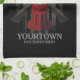 Brandman NAME Brandkår Brandstation USA Flaggdesign - Emblem med röd hydrant och yxa. Anpassa med ditt namn, stations-/avdelningsnummer och plats.