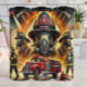 Denna digitala grafik är en heroisk sammansättning som har en central, stor brandkår med en ansikte-mask. Omkring detta finns brandmän i många i aktion, utrustade med andningsapparater och slangar, vid sidan av en klassisk röd brand i lastbil. Flamor och rök snurrande över hela scenen, vilket understryker brandbekämpningens farlighet och mod. Även brandsläckningsanläggningar som verktyg och brandkårer syns, vilket kompletterar brandmännens hyllning.