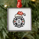 BrandmanSanta gåvor och gåvaidéer för julbrandmän och Santas för kvinnliga brandmansärdrag röda hatt, avfyrar avdelnings-temasymboler, mistletoen och candy cane med firefightingkärlek av helgdagar.