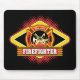 Brandmanlogotypen med brandmanemblem med att rasa flammar, avfyrar stege- och brandpostsymboler! Stor brandmantext! Djärva brandmanutslagsplatser och gåvor! Perfekt för firefightingfundraisers och brandstationar! Flammande röda och gula färger!