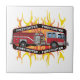 Härligt avfyra lastbilen är fokusera av denna brandmangåva! Avfyra rött avfyrar motorn med flammar bakgrund! BRANDMANtextsurrounds avfyralastbilen med stort flammar bakgrund! Prefekten för brandmän, familj och avfyrar stationer!