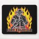 Brandmannen avfyrar in utrustar och avfyrar yxasilhouetten med rött, orange, och gult flammar bakgrund! Fäll ned brandmantext. Underbara brandmangåvor för brandmän och brandstationar! Tillfoga din egna beställnings- text för att personifiera!