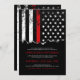 En unik inbjudan anpassad för brandräddningsarbetares fester, examina, pensioneringar eller andra evenemang. Inbjudan har en amerikansk flagga med tunn röd linje och en överlagd struktur med distress-effekt. Ovanpå detta finns en effekt som ser ut som utrivet papper som innehåller din information. Alla element på inbjudan är justerbara, tryck bara på knappen för anpassning.