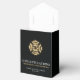 Den här designen har en brandmäns flagga med svarta och vita ränder, och även en tunn röd linje rand. "Grattisar" och en brandmansbricka ovanför namn i den graderande brandkåren. Den här utformningen fungerar också underbart för att pensionera brandmän, soldater eller chefer. Firar i stil!