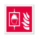 Brandmännens hiss och flamikon på röd bakgrund.