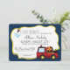 Knubbiget eldar lastbil och prydnadsbrandslangen ram för att fira baby med denna roligt och kallblodiga inbjudan till babydusch. Anpassa text som du vill och rum för registerinformation på baksidan. Markera färg som bakgrund.