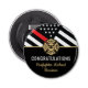 Den här designen har en brandmäns flagga med svarta och vita ränder, och även en tunn röd linje rand. "Grattisar" och en brandmansbricka ovanför namn i den graderande brandkåren. Den här utformningen fungerar också underbart för att pensionera brandmän, soldater eller chefer. Firar i stil!