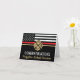 Den här designen har en brandmäns flagga med svarta och vita ränder, och även en tunn röd linje rand. "Grattisar" och en brandmansbricka ovanför namn i den graderande brandkåren. Den här utformningen fungerar också underbart för att pensionera brandmän, soldater eller chefer. Firar i stil!