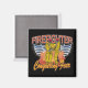 Två brandmän i fullt brandsläckningsredskap står redo med en brandslang! Blått vingar och en brinnande bakgrund med den övre FIREFIGHTER-texten och den undre erövrande rädslan! Underbar gåva till den modiga och orädda kämpen!