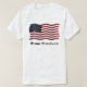 Vinka amerikanska flaggan i briljant röd vit & blått, med "brännskada text för denna flagga". Chip. Välj din egna bakgrundsfärg.