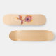 en dekorativ blommigt av en ro som brinner upp i lågor i bläck och vattenfärger på en skateboard