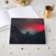 Landskapsfoto av en overklig solnedgång tagen i sjö Lago di Fusine, Italien. Röda färg är lite överdrivet, men när man står där i verkligheten kände verkligen så här. Om ett kort-ögonblick fattiga sol genom dimman och lika snabbt försvann.
