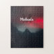 Landskapsfoto av en overklig solnedgång tagen i sjö Lago di Fusine, Italien. Röda färg är lite överdrivet, men när man står där i verkligheten kände verkligen så här. Om ett kort-ögonblick fattiga sol genom dimman och lika snabbt försvann. Med ett personlighetsdugligt monogram i himlar.