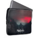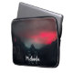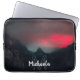 Landskapsfoto av en overklig solnedgång tagen i sjö Lago di Fusine, Italien. Röda färg är lite överdrivet, men när man står där i verkligheten kände verkligen så här. Om ett kort-ögonblick fattiga sol genom dimman och lika snabbt försvann. Med ett personligt monogram i bergen.
