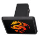 En drakedesign i orange och guld.