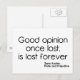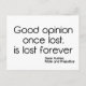 Ett citat av berömden från Jane Austens Pride and Prejudice: Bra opinion gång, är borttappad för alltid.