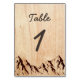 Bränt berg i Wood Rustic Bordsnummer Card del av uppsamlingen för bränt berg i Wood Rustic Bröllop