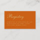 Ett enkelt tilläggskort till bröllop: endast text på bränd orange bakgrund. Titeln "Registry" är skriven med en elegant kalligrafisk skrift.