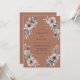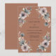 Denna design har en rik bränd orange bakgrund accentuerad av känsliga akvarell blomkluster. Dämpade toner av dammig blå, lavendel och mjuka grå anemone skapar en sofistikerad kontrast. Luffiga eukalyptusblad och botaniska kvistar ger en naturlig, jordnära känsla till estetiken. Perfekt för en höst- eller ökeninspirerad händelse, denna konst väcker en varm och romantisk stämning.